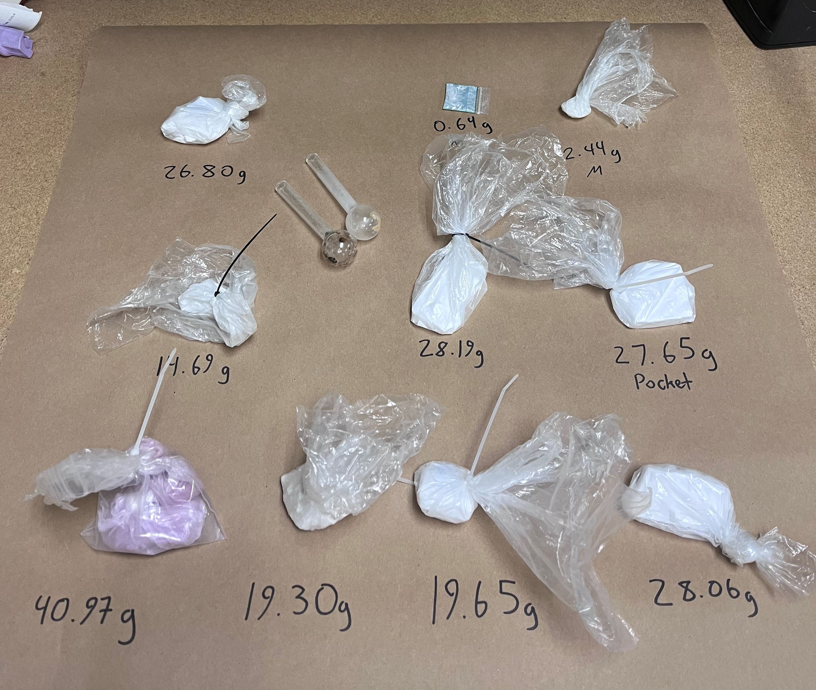 Deputies woke Mellon and conducted a search of her person and vehicle. During their search, deputies located approximately 7.3 ounces of suspected fentanyl, over 3 grams of methamphetamine, drug paraphernalia and pepper spray.